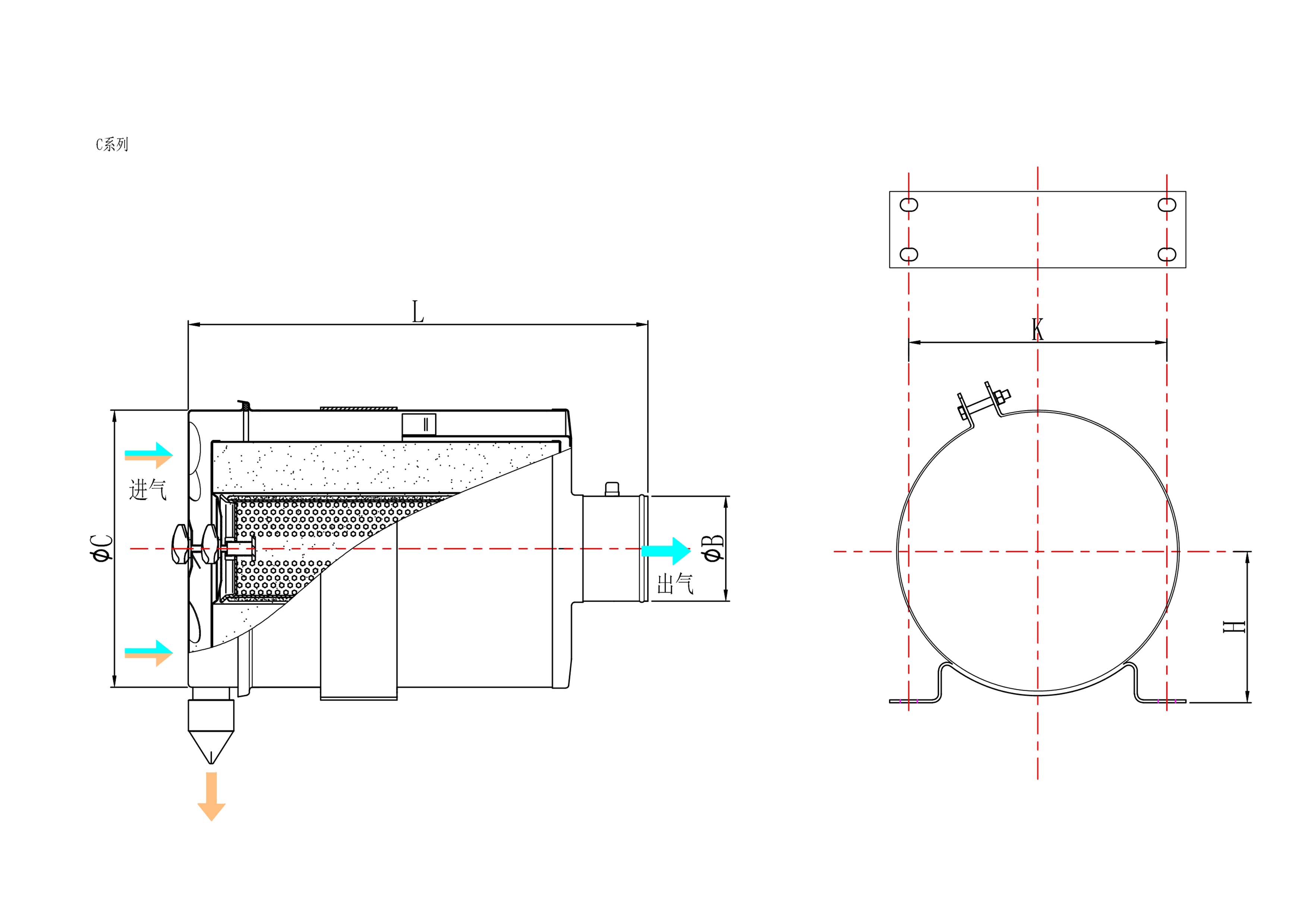 O filtro de ar da série CL muda a ingestão de ar radial do produto tradicional e o ar entra na caixa do filtro de ar através do orifício de entrada da tampa final para realizar a ingestão de ar direta. Após o ar estiver no filtro de ar, ele é girado a uma alta velocidade pela ação do palheta static de roda na tampa final, e a força centrífuga gerada separa as impurezas mais pesadas da corrente de ar. Estes contaminantes são descarregados através de uma válvula de evacuação integral. Apenas fluxos de ar purificados para os elementos do filtro de ar (fases primárias e de segurança da filtração). Esses elementos retêm os 99,99% dos contaminantes que não foram eliminados na primeira etapa. Em seguida, limpe fluxos de ar para o motor ou compressor de ar.