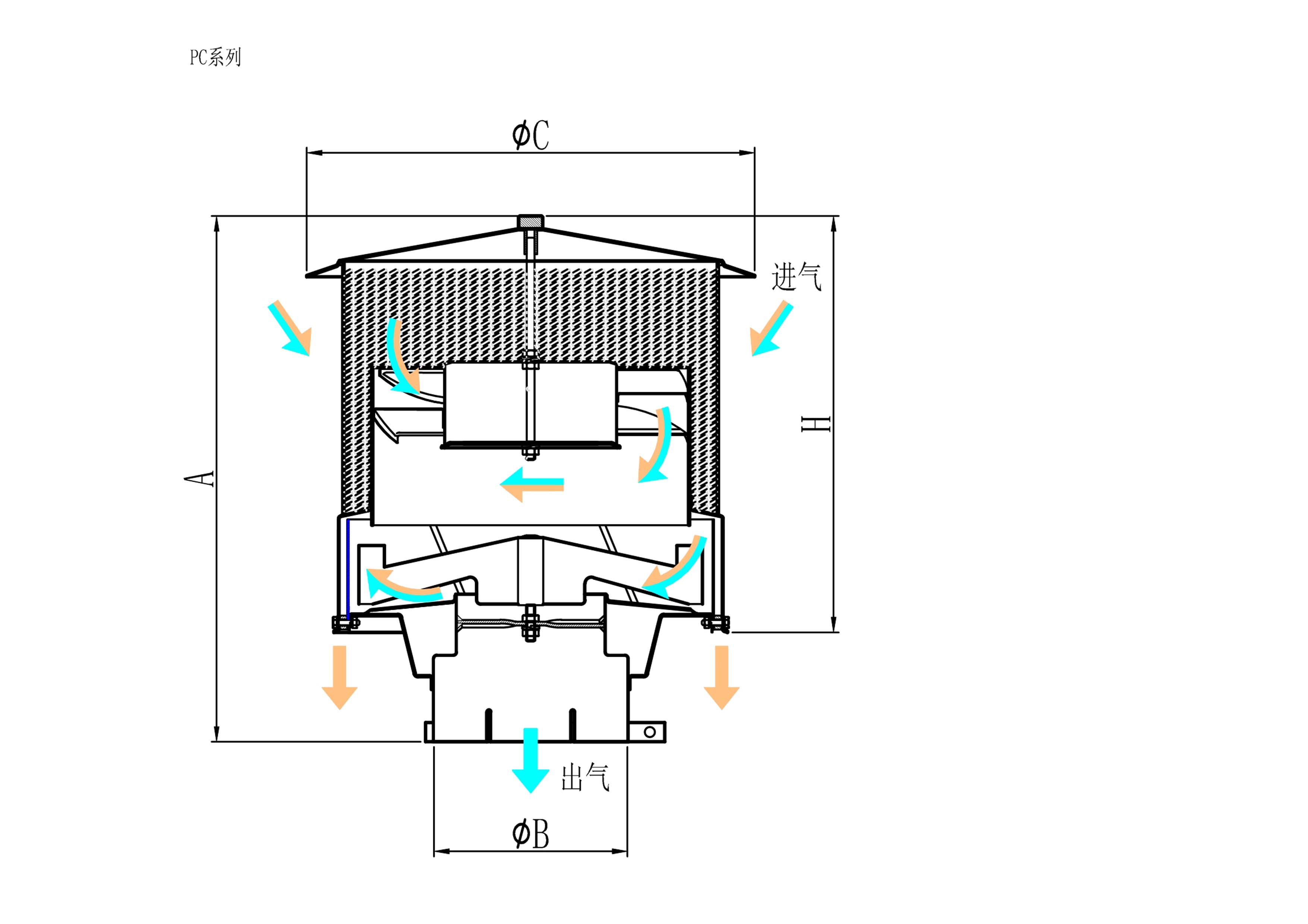 O ar é primeiro filtrado através de uma pré-tela para remover grandes detritos, então os fluxos de ar através de desejos estáticos fazendo com que o ar gire. Como o ar gira, a força centrífuga separa a poeira, insetos sujos, chuva e neve do ar. Todos os detritos separados são impulsionados pelo rotor rotativo de alta velocidade para descarregar da parte inferior ou lateral do canal especial. O rotor é acionado pelo ar de roda, nenhuma potência adicional é necessária.
